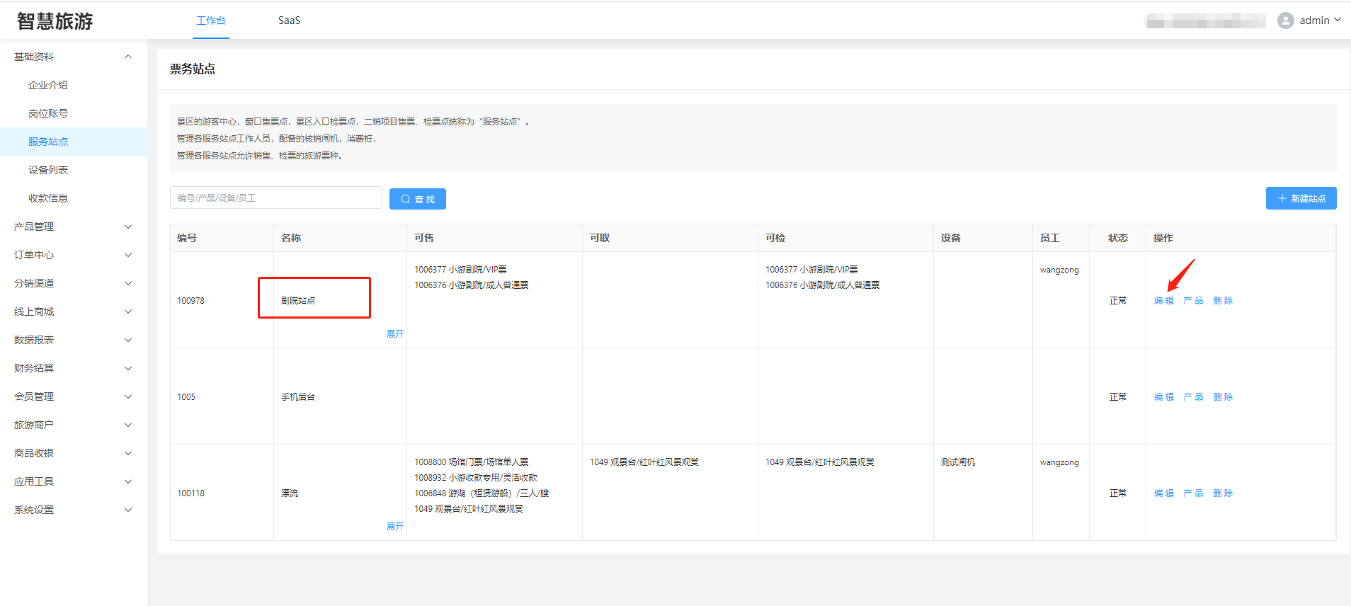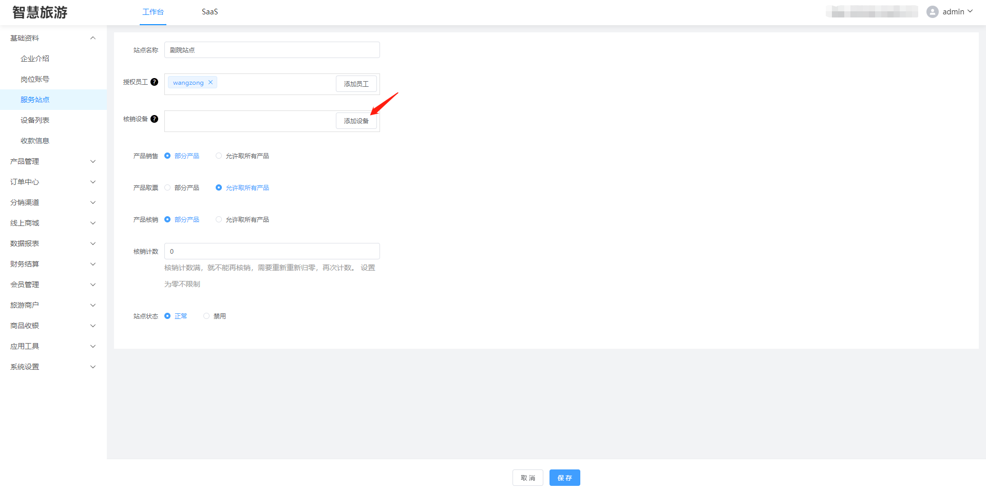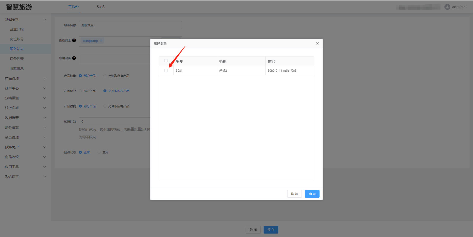 在基础资料——》票务站点,选择当中的站点,点击编辑  进入编辑页面,点击添加设备  勾选您需要放在该站点的设备  ==切记==:在退出的时候,一定要点击下方的保存