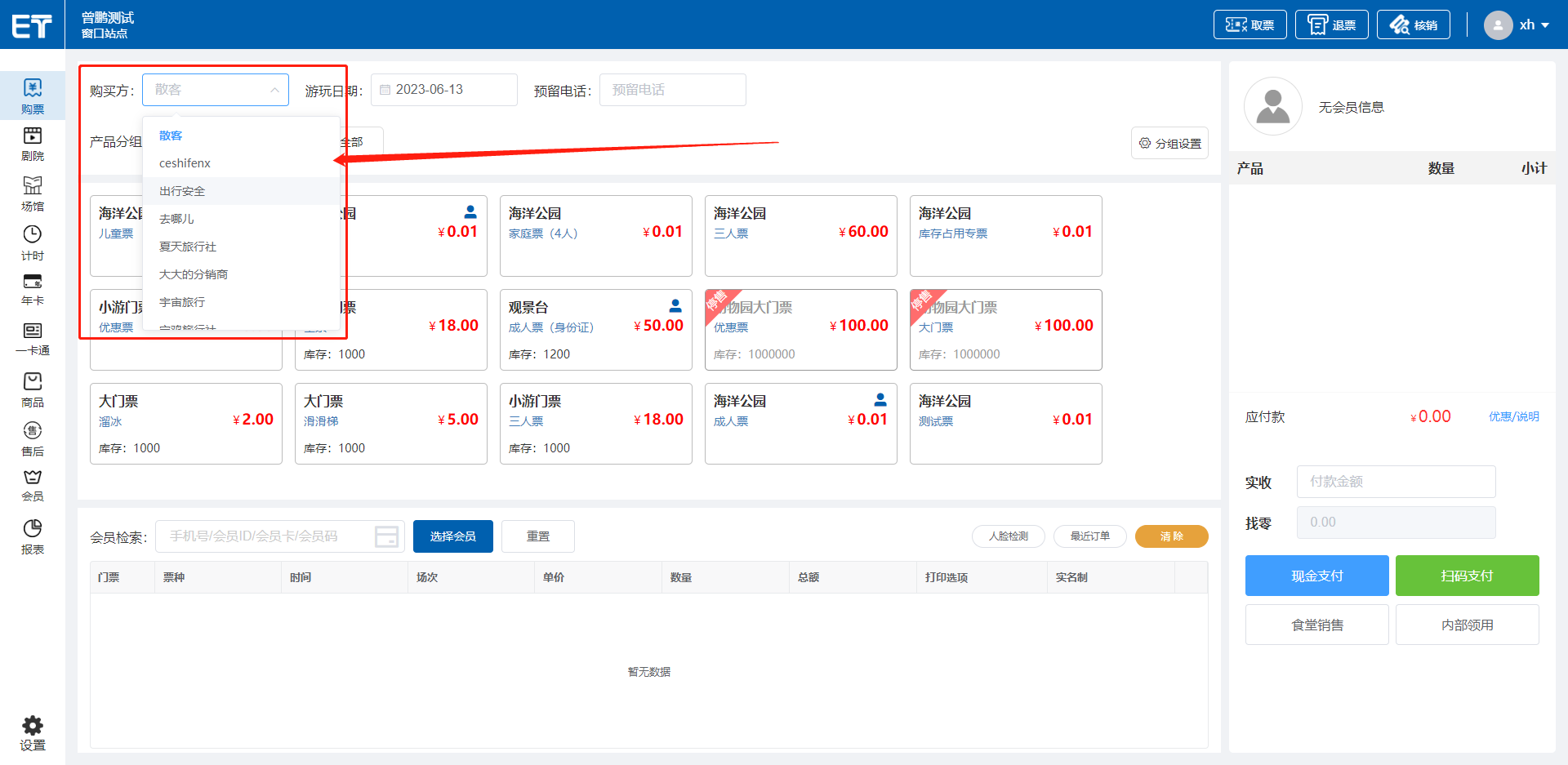 场馆产品的售卖