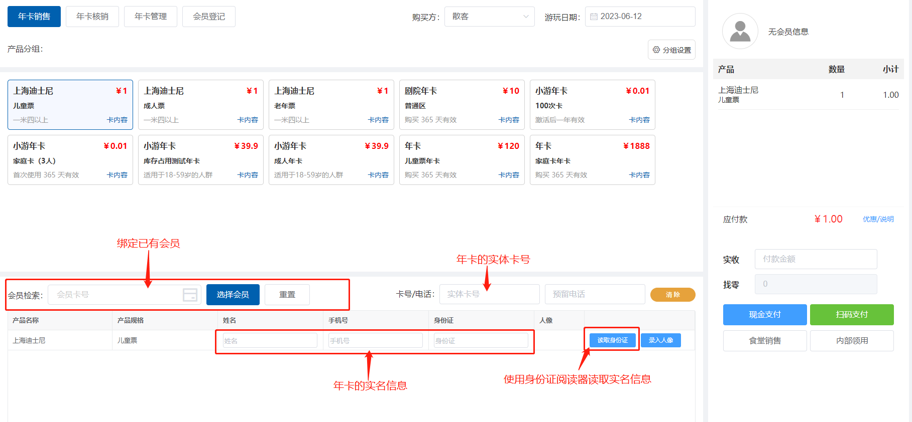 11、年卡的办理和人脸的录入