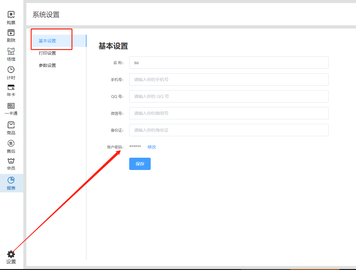 ##### 登录售票窗口软件,设置-基本设置-账号密码  ##### 修改按钮,输入原密码跟新密码,点击确定,重新登录窗口软件