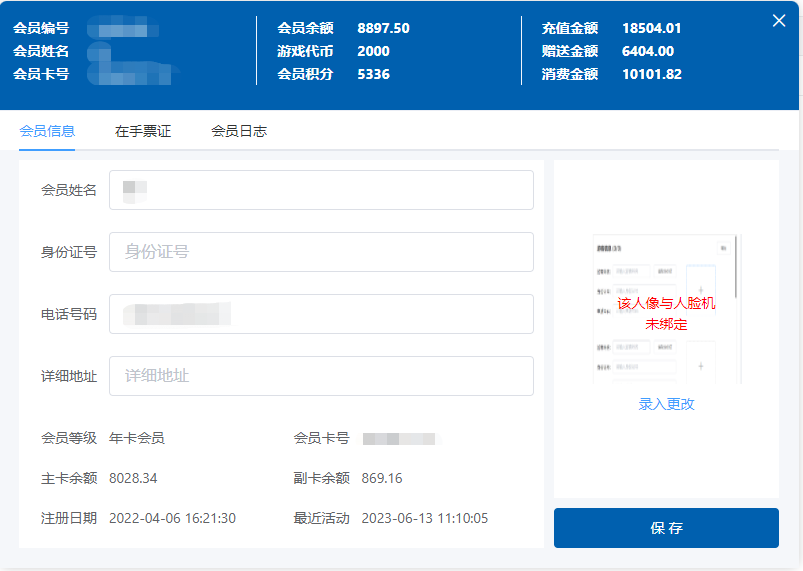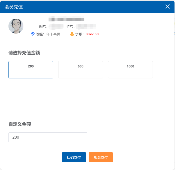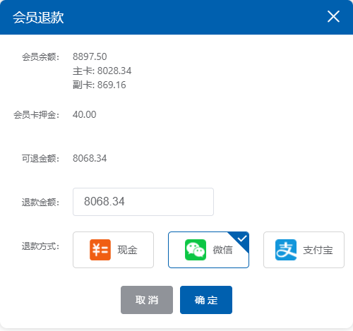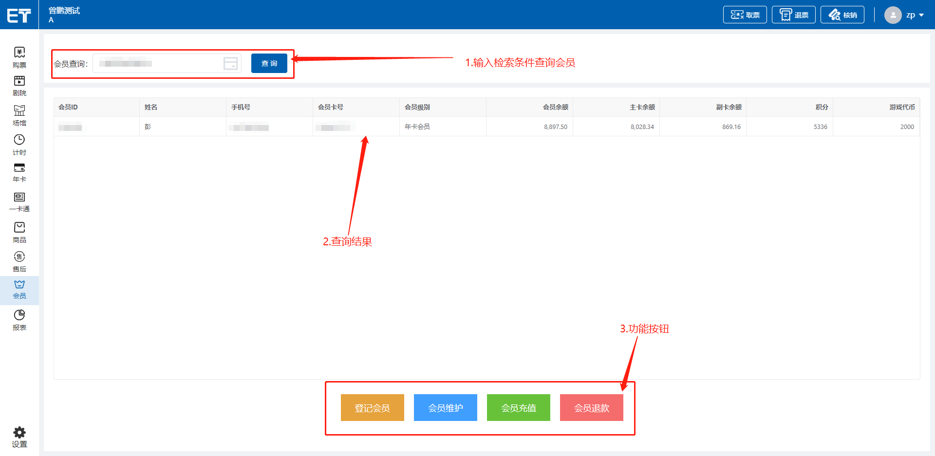 窗口系统进入会员页面 ==如查询出多张会员卡,单机会员列表即可选中==  登记会员:输入会员信息创建一个新的会员  会员维护:进行会员信息的修改和查看  会员充值  会员退款 ==进行微信或支付宝退款时,需要该会员30天内存在有效的充值记录==