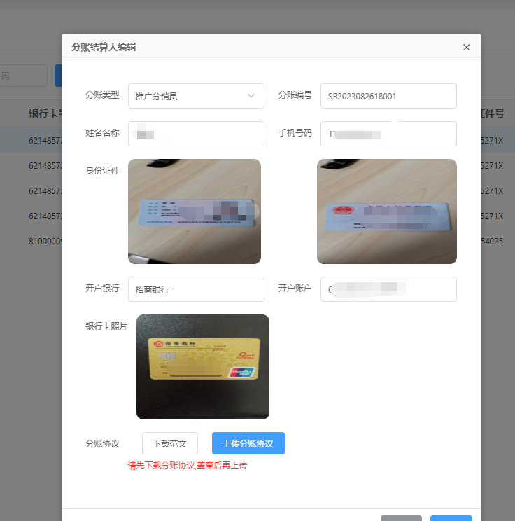 ### 一、概述 景区在运营过程中,和联营商户,推广员存在利益分成。传统的方式是,景区收款到景区银行账户后,在通过银行转账的方式把商户,推广员的款项汇给对方。该种操作方式,一是有重复缴税的问题,二是给财务工作人员带来很大的工作量。 ------------ 线上分账是通过有持牌资质的支付公司,收单后,资金进入备付金账户里,在清算前,不属于任何一方。支付公司根据景区方和商户、推广员等分账协议,进行清算,清算后每方账户进多少钱,各自申报多少经营所得税,这种情况就可以避免因为钱都进入公户而导致税务重的问题。 ### 二、景区采用分账功能后,资金到账模式的变化 景区方采用分账功能前,景区每天的收款资金存在结算账户中,在当天晚上(过24点后)会自动提现到景区的银行账户中。  ------------ 采用线上分账后,景区通过支付公司的收款资金,出现了两个账户,一个是备用金账户,一个是结算账户,资金收款先到备用金账户,通过手动结算,转到结算账户,后系统会自动或者人工提现到景区的景区的银行账户中。简单的理解为,需要手动去提现。   ### 三、关于线上分账,有什么限制 根据央行的管理规定,分账比例不能超过30%,即收单100元,景区方至少需要分到70元,分账方不能超过30元。 另外,分账方和景区之间,必须有合规合作分账协议。[参考范文](https://files.et0731.com/soft/fenzhangxieyi.doc "参考范文") ### 四、分账操作步骤 #### 1、分账方登记 分账方可以是分销推广员,联营商户,以分销推广员举例。在分销员提现操作时,  需要补充资料   #### 2、分账资料审核   #### 3、分账方提现  #### 4、财务审核  ==注意: 1、“线上付款”即采用分账方式给分账方提现。 2、请确保贵司的备用金账户有足够的余额进行分账操作,如果分账30元给分账方,至少要确保备用金账户里面有100元,分账操作成功后,分账方得30元,景区结算账户到账70元。==