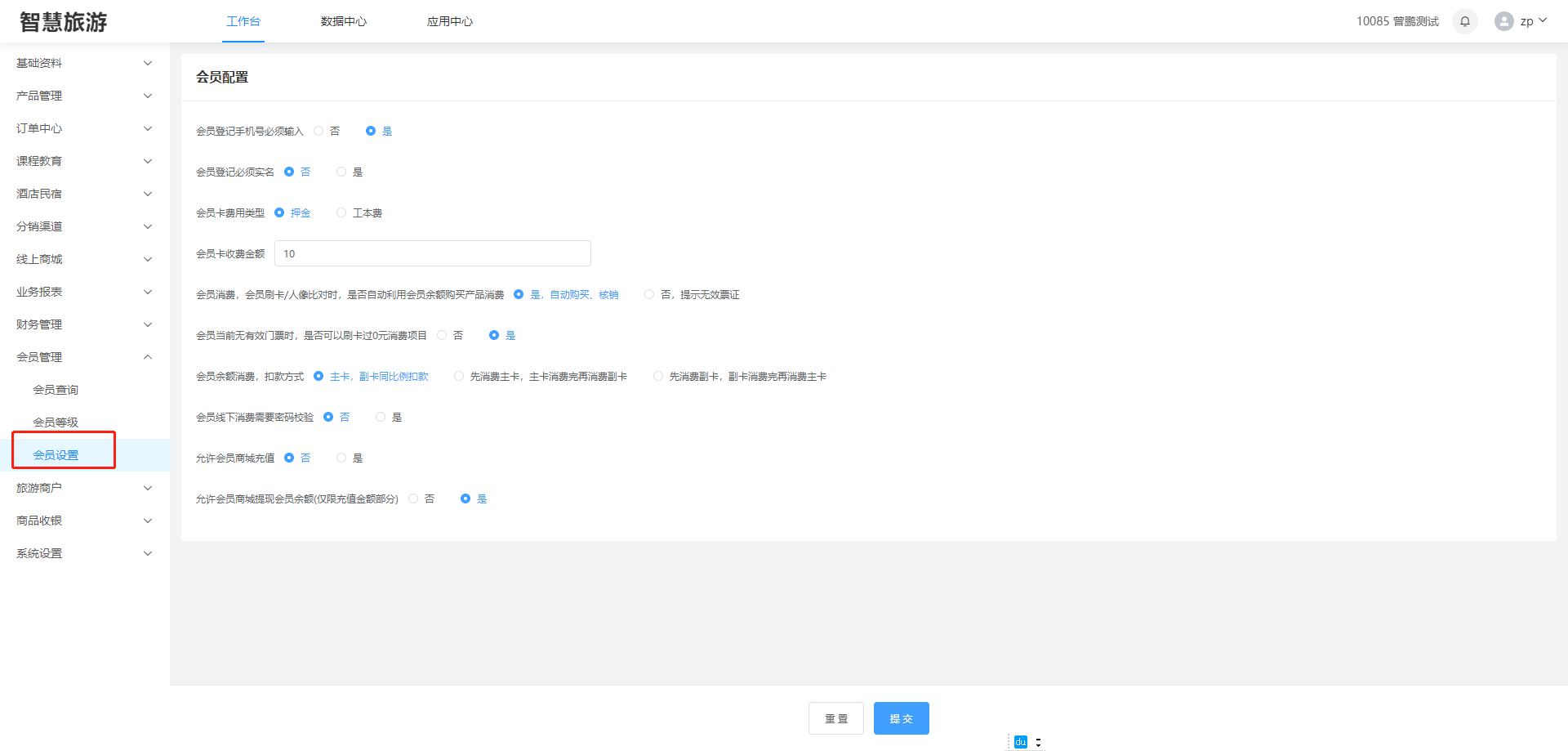 ##### 系统现在会员有两个途径生成: ##### 1-扫码进入微商城或通过链接进入小程序这个时候就会生成一个线上会员。 ##### 2-窗口或者手持机现场与景区的工作人员面对面办理的会员这是线下会员。 ##### 3-线上会员与线下会员可以进行合并的,以电话号码作为唯一的依据。 ### 登录后台管理系统,进入‘会员设置’  这里的会员设置主要是针对于现场售票窗口办理的会员所做的一些配置(办理年卡/次卡和一卡通)这些都是先要注册成为会员的,需要保存会员的个人信息。