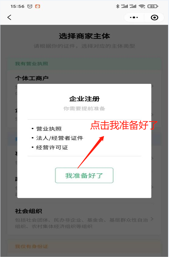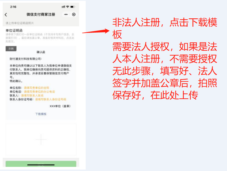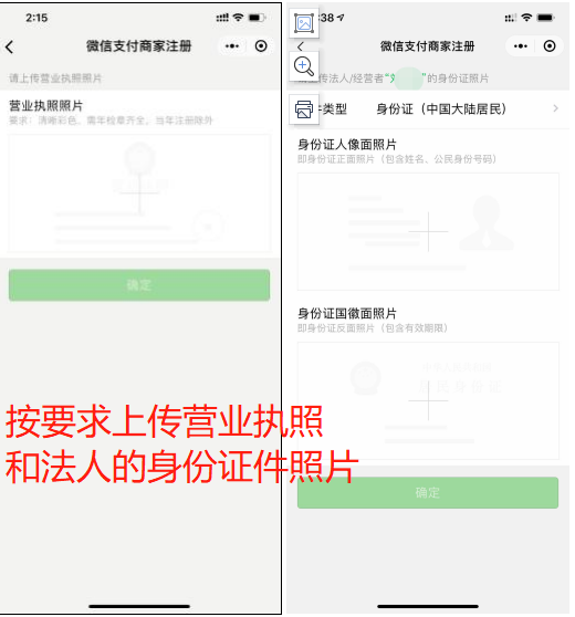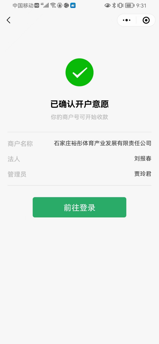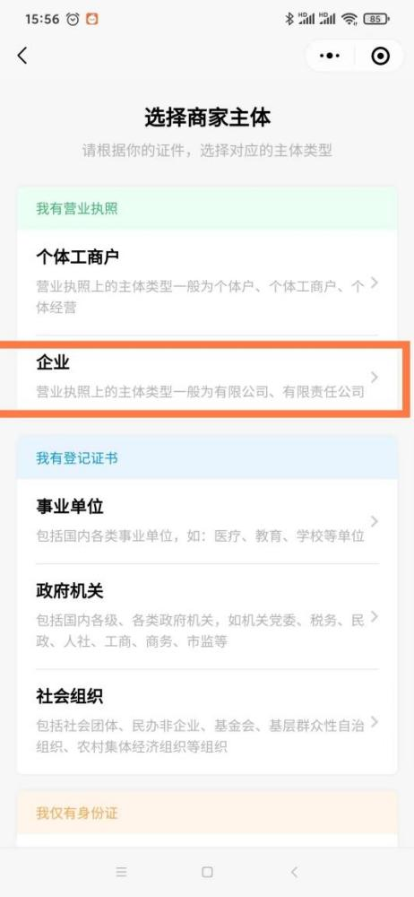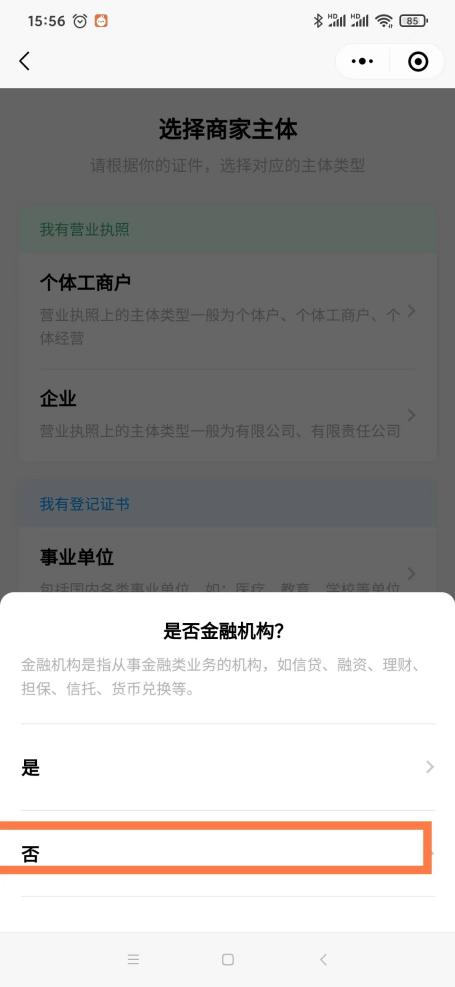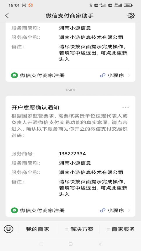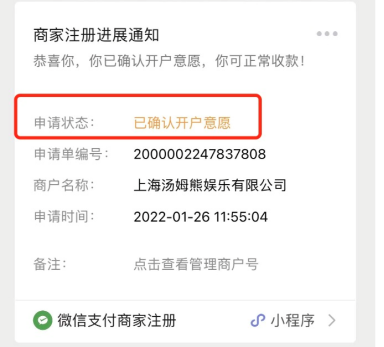 ## 1.请微信扫码注册 `微信客服电话: 95017`  ## 2.点击小程序  ## 3.选企业  ## 4.选择否       ==到这一步时,要点击下载模板,要填写信息,法人需签字,盖公章后再上传==  查看状况,申请状态为已确认开户意愿,表示已注册成功。 最后,请再用注册的手机微信扫以下这个==线下收款==的二维码,进行绑定即可。  出现:已确认开户意原,表示已审核通过。
